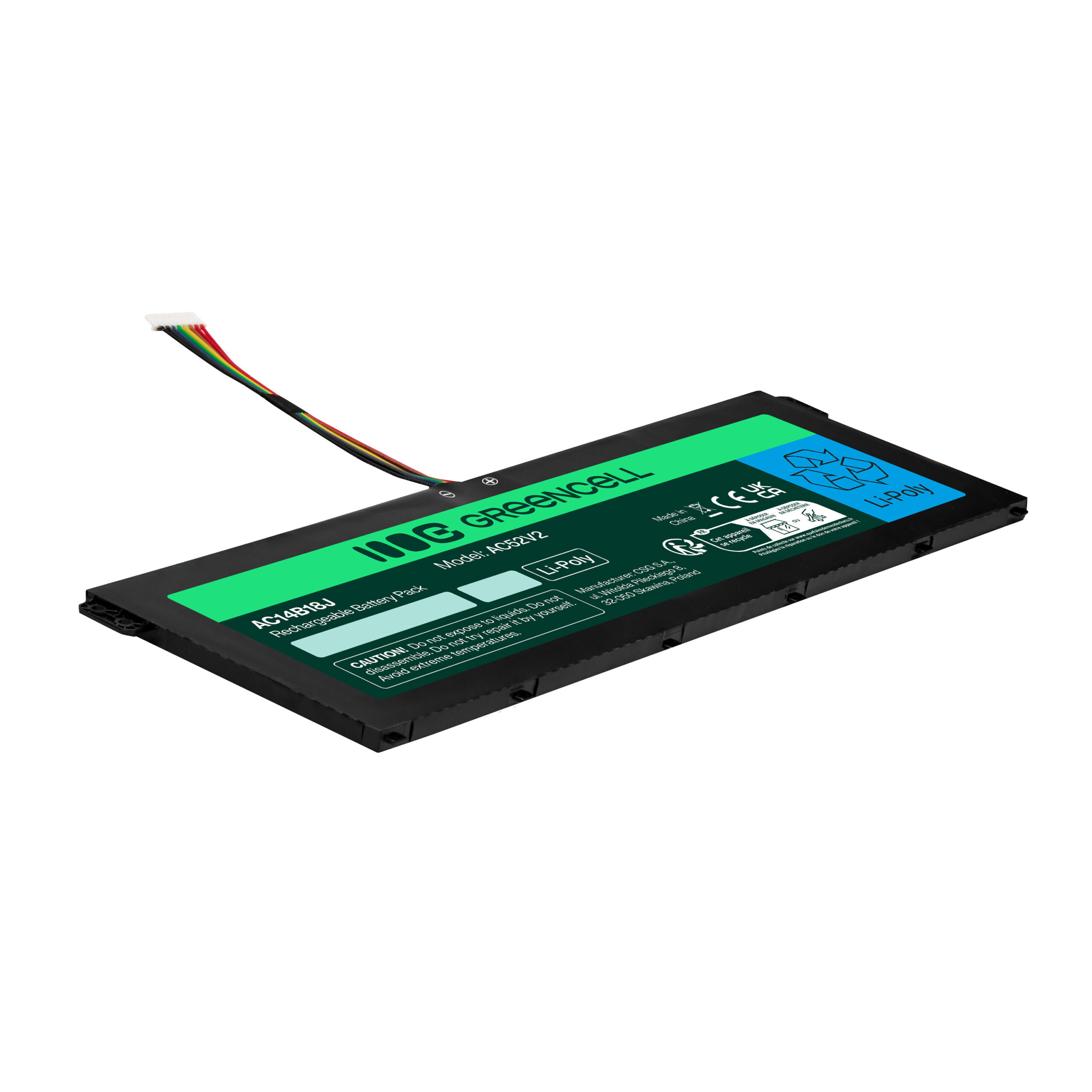 Warranty: 12 months; Cells manufacturer: Greencell; Voltage: 11,4 V; Number of cells: 3; Cells technology: Li-Polymer; Colour: Black; Overdischarge protection: Yes; Overcharge protection: Yes; Product code: AC52V2; Manufacturer: Greencell; Capacity: 3600 mAh;