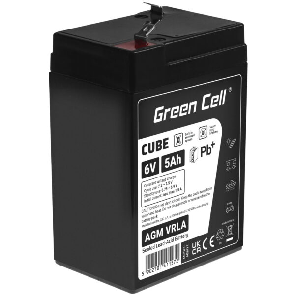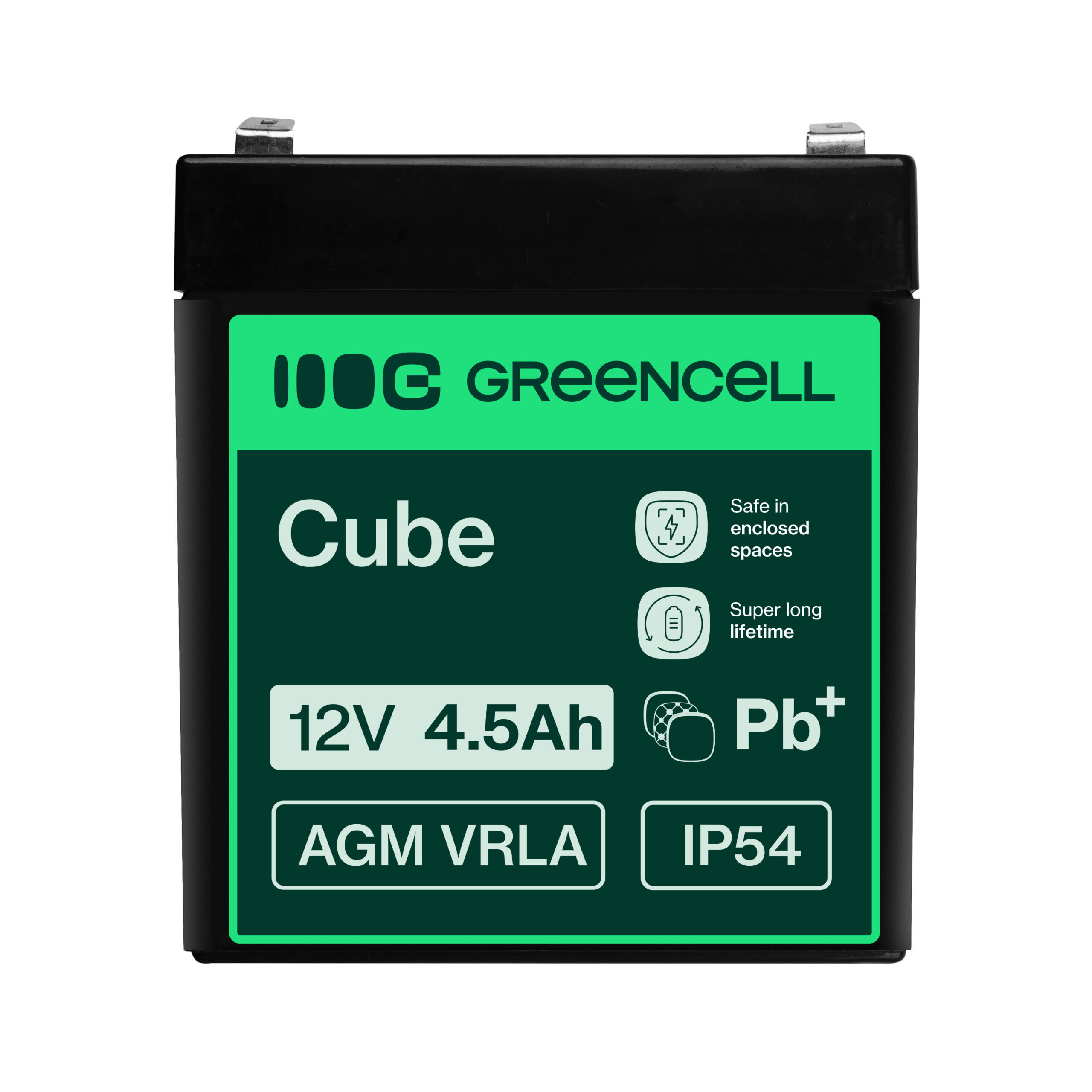 Warranty: 24 months; Cells manufacturer: Greencell; Voltage: 12V; Type: VRLA AGM; Colour: Black; Overdischarge protection: Yes; Overcharge protection: Yes; Product code: AGM44; Manufacturer: Greencell; Surge protection: Yes; Size: 90 x 70 x 101 mm; Weight: 1.34kg; Capacity: 4.5Ah; Popular model: Yes; Terminal: Faston 187 (F1); Vitality: up to 5 years; Max. discharge current: above 3C;