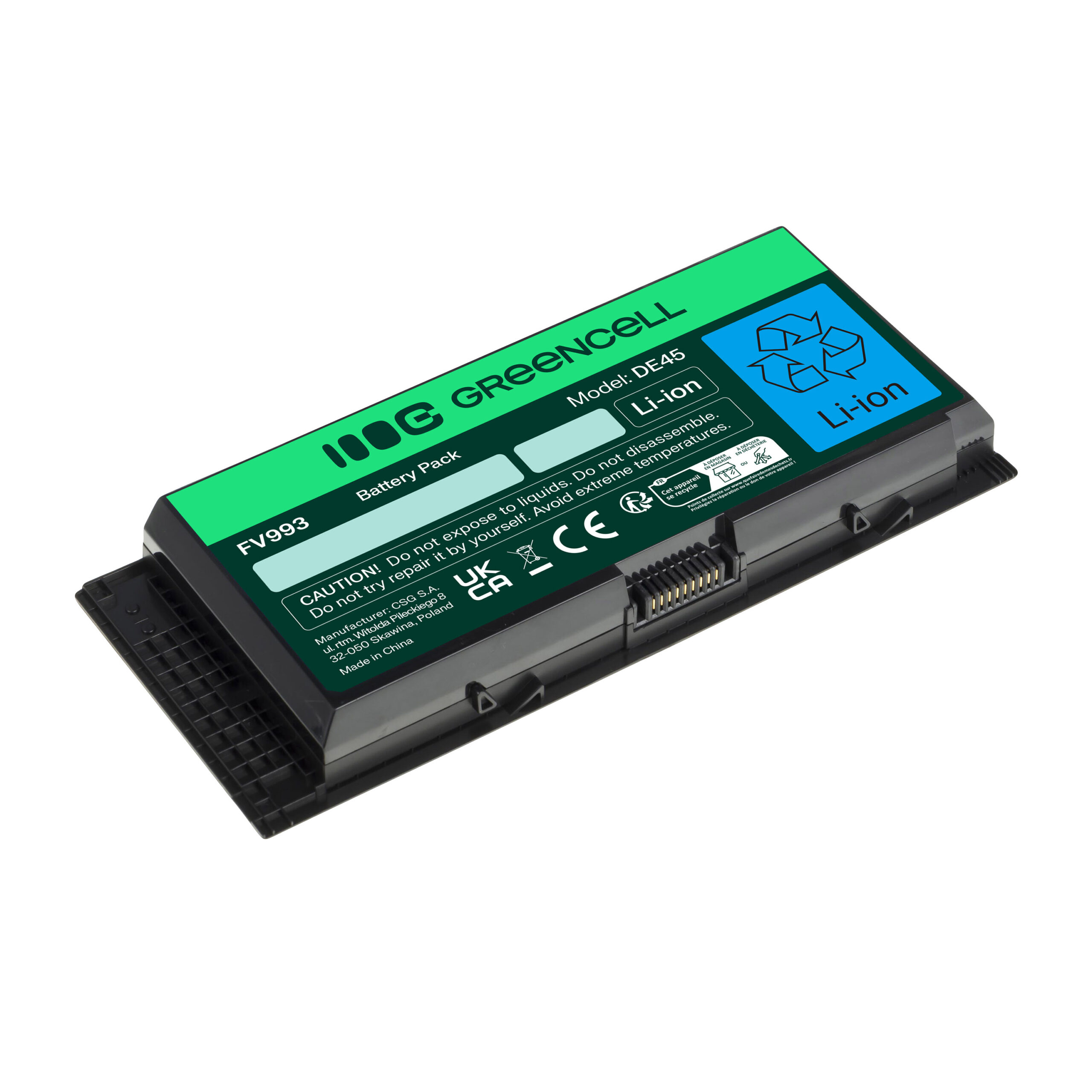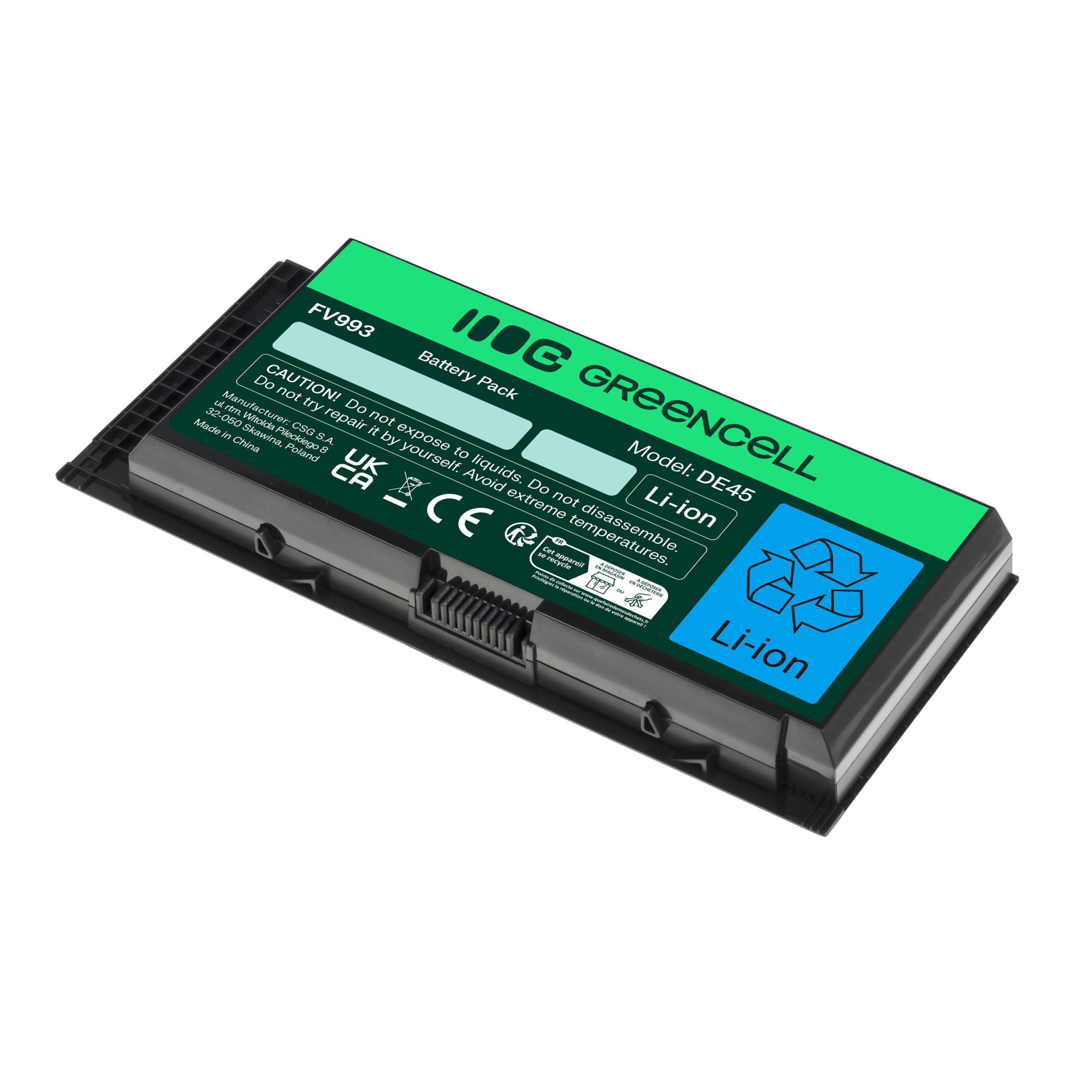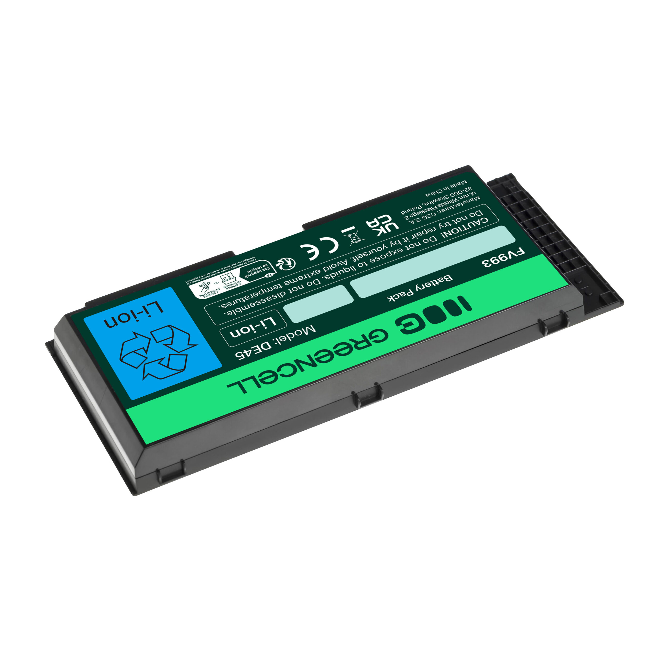 Warranty: 12 months; Cells manufacturer: Greencell; Voltage: 11.1V (10.8V); Number of cells: 6; Cells technology: Li-Ion; Colour: Black; Overdischarge protection: Yes; Overcharge protection: Yes; Product code: DE45; Manufacturer: Greencell; Capacity: 4400 mAh;