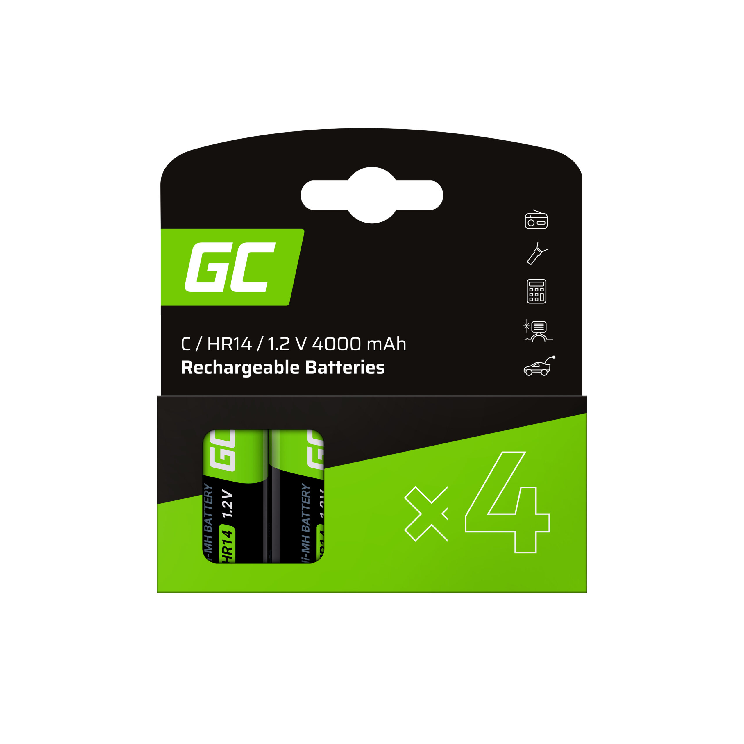 Green Cell Batteries 4x C R14 HR14 Ni-MH 1.2V 4000mAh