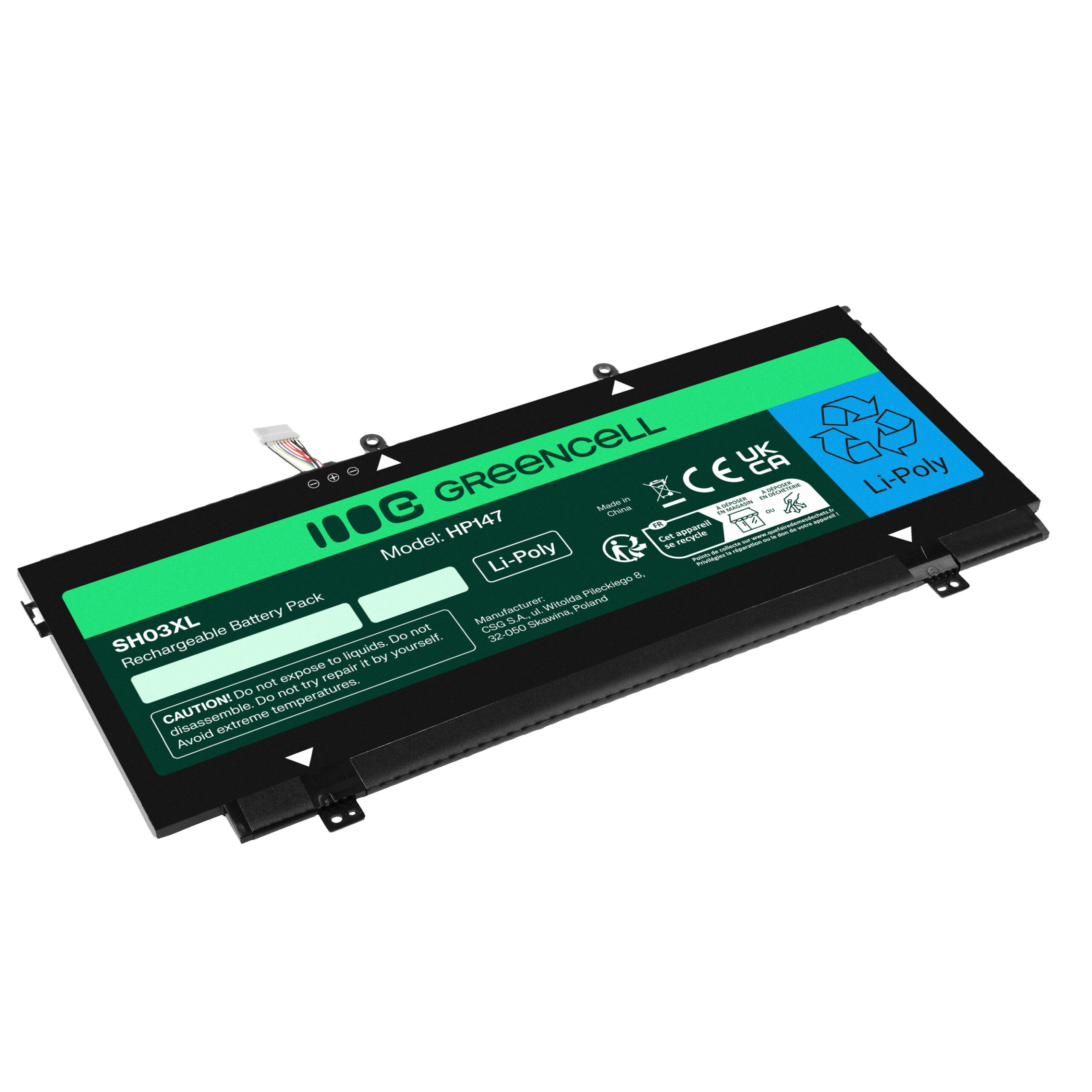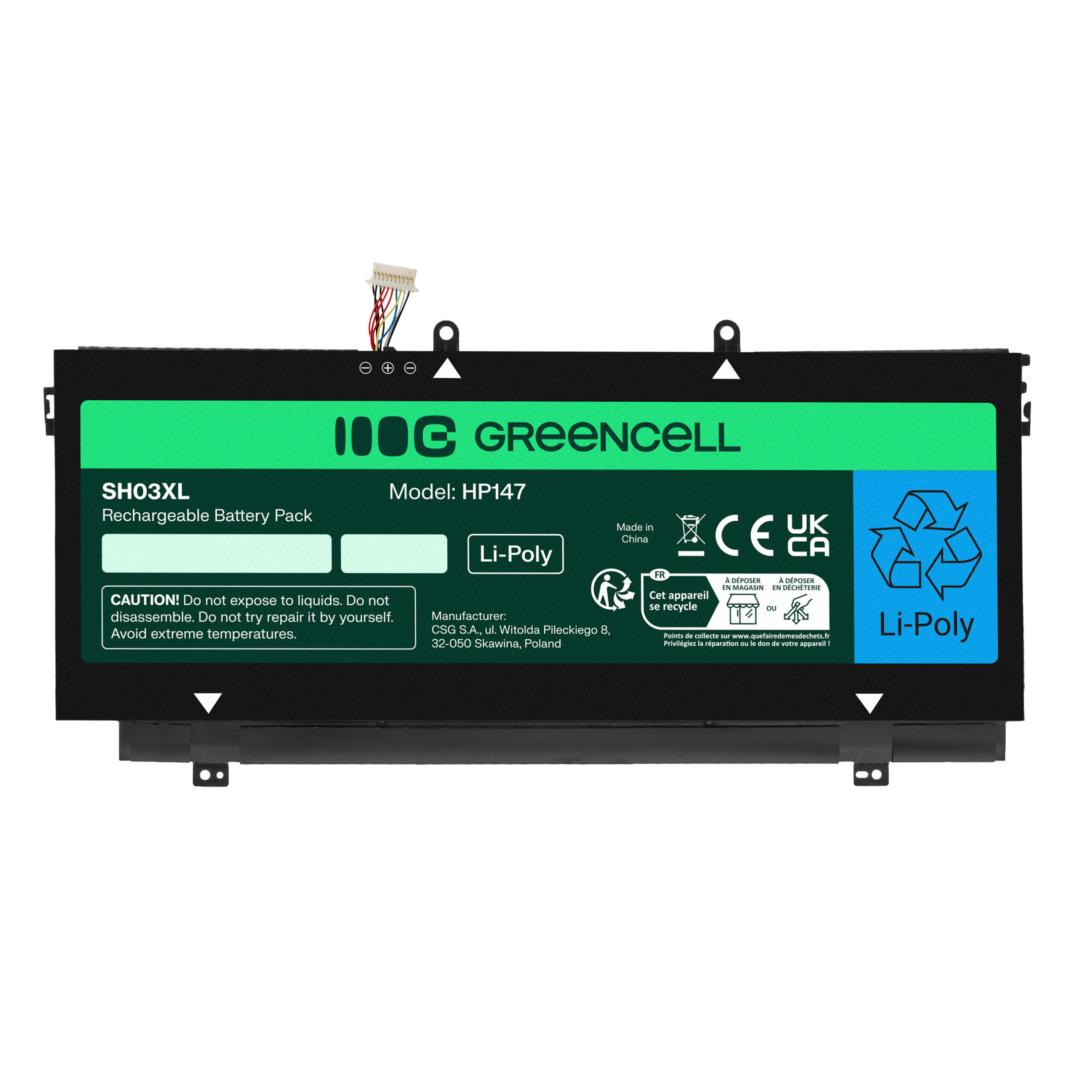Warranty: 12 months; Cells manufacturer: Greencell; Voltage: 11.55V; Number of cells: 3; Cells technology: Li-Poly; Colour: Black; Product code: HP147; Manufacturer: Greencell; Capacity: 4200mAh; Work time: from 4 up to 10h; Series: Polymer;