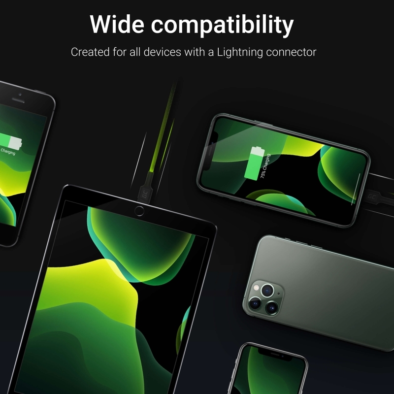 Warranty: 24 months; Product code: KABGCSET05; Manufacturer: Greencell; Length: 1.2m; Model: GC Ray; Backlight: Yes; Plug type: USB – lightning;