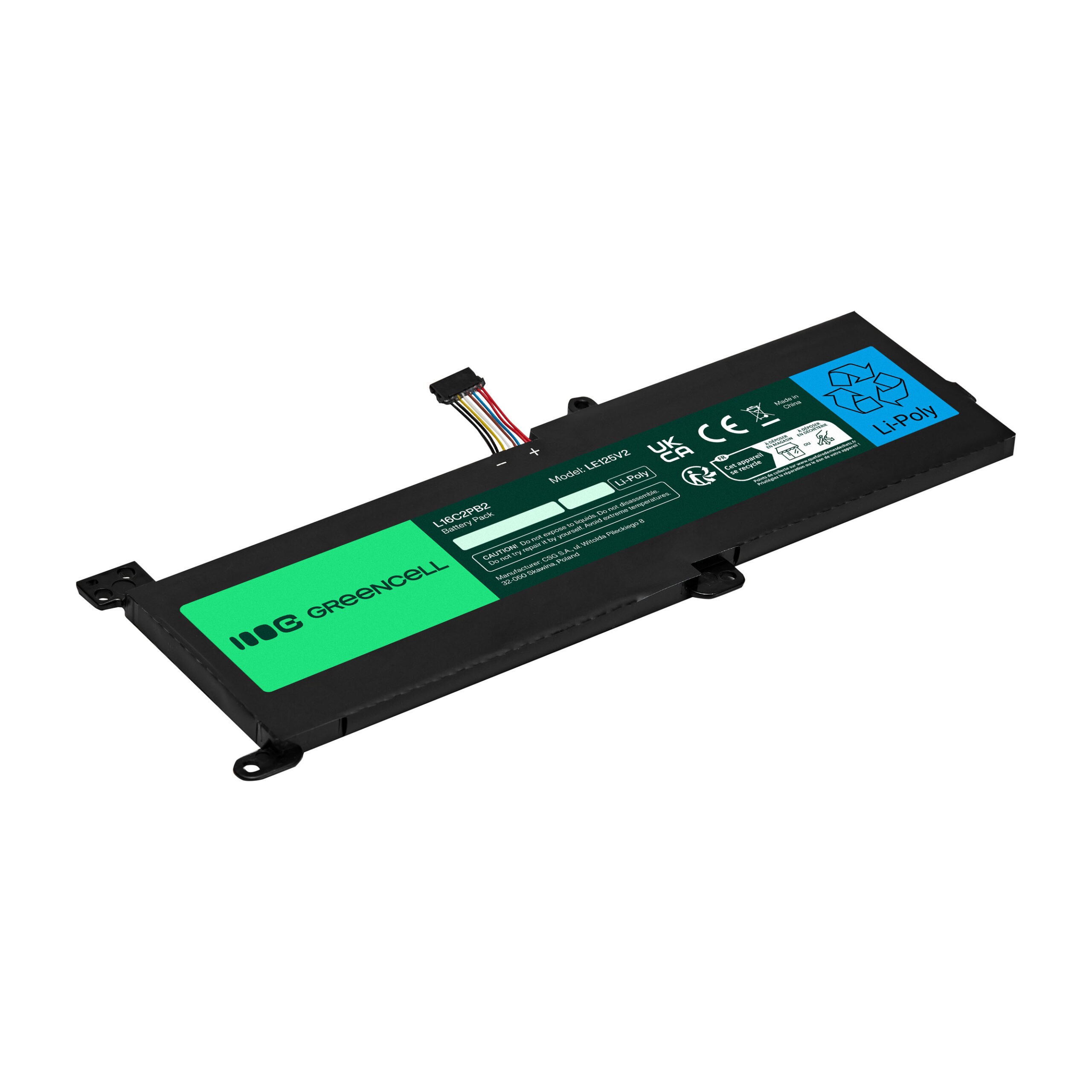 Warranty: 12 months; Voltage: 7.6V (7.4)V; Number of cells: 2; Cells technology: Li-Polymer; Colour: Black; Overdischarge protection: Yes; Overcharge protection: Yes; Product code: LE125V2; Manufacturer: Greencell; Capacity: 4500mAh;