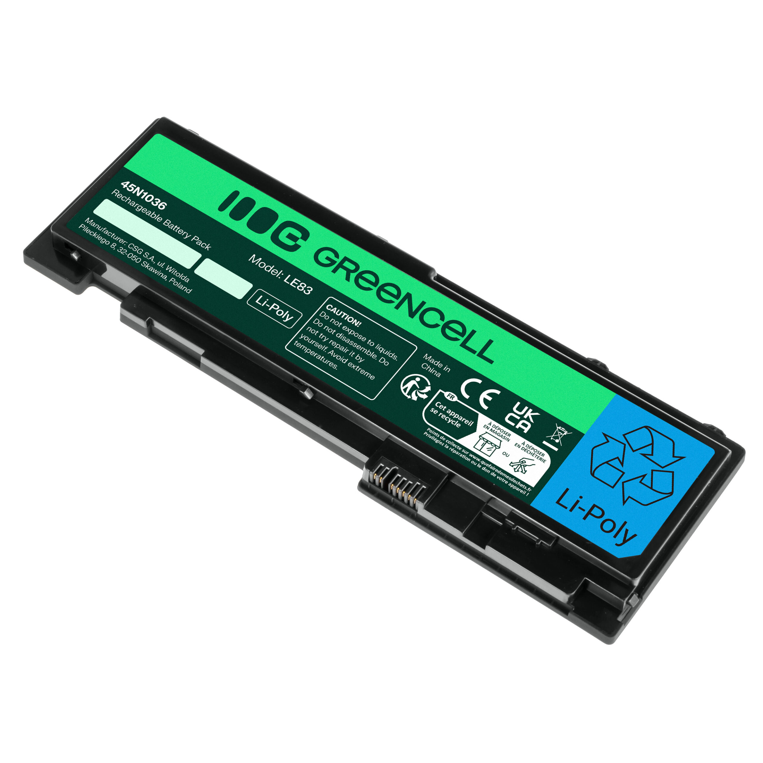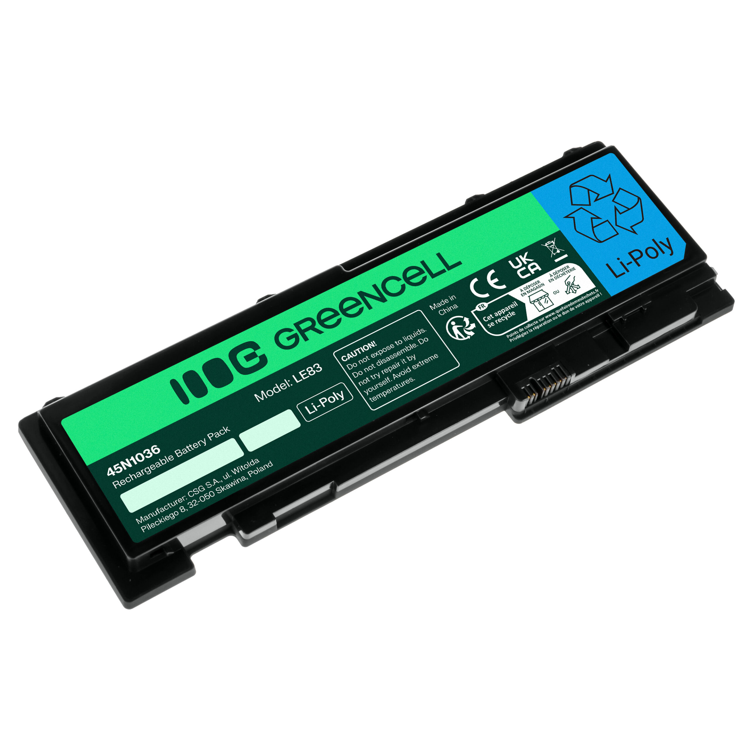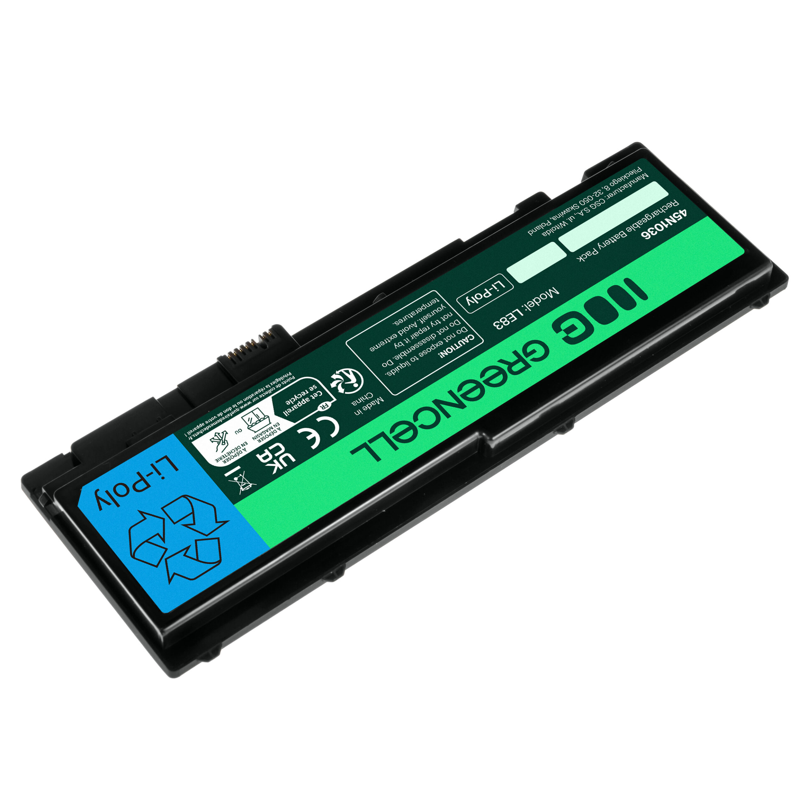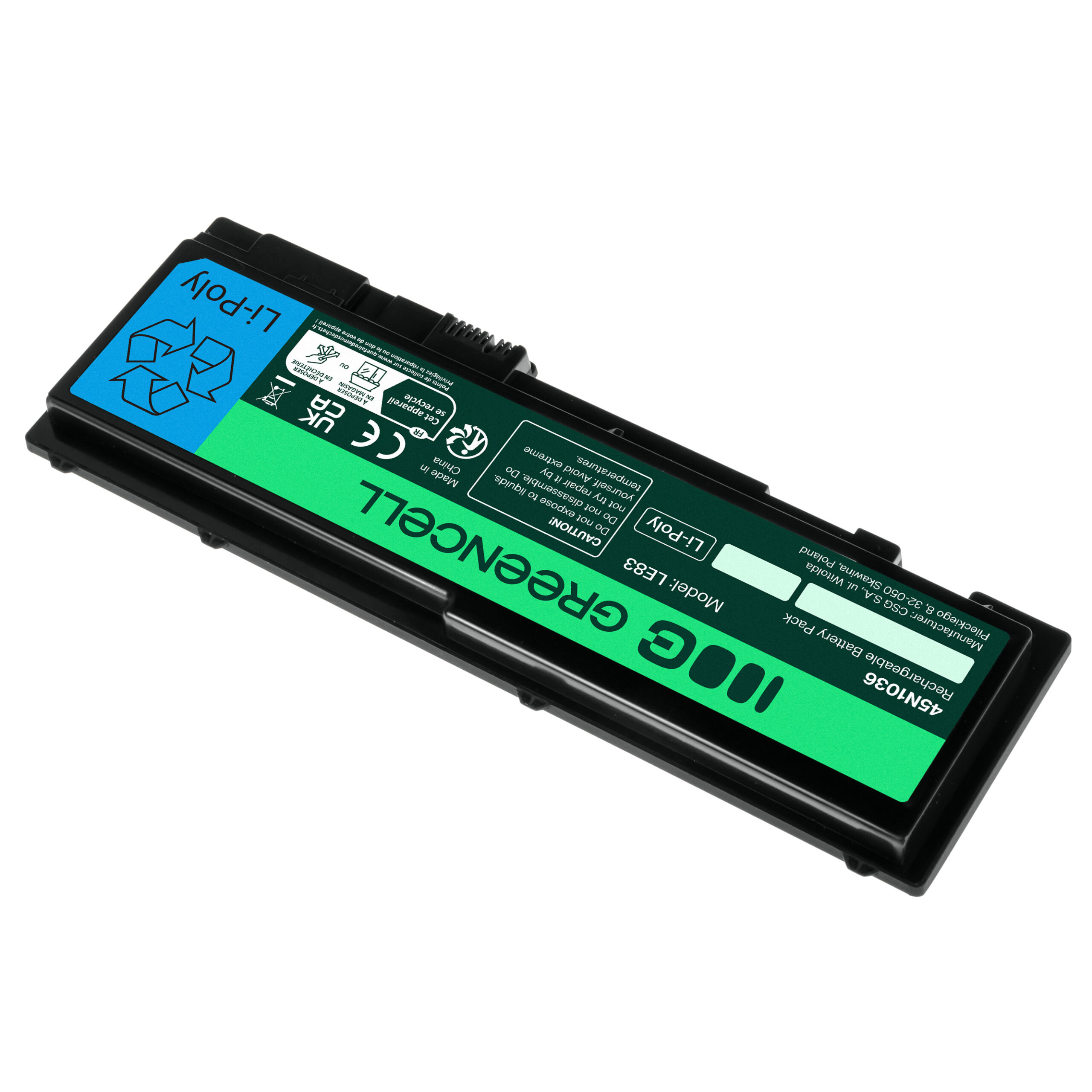 Warranty: 12 months; Cells manufacturer: Greencell; Voltage: 11.1V (10.8V); Number of cells: 6; Cells technology: Li-Ion; Colour: Black; Overdischarge protection: Yes; Overcharge protection: Yes; Product code: LE83; Manufacturer: Greencell; Capacity: 3400 mAh;