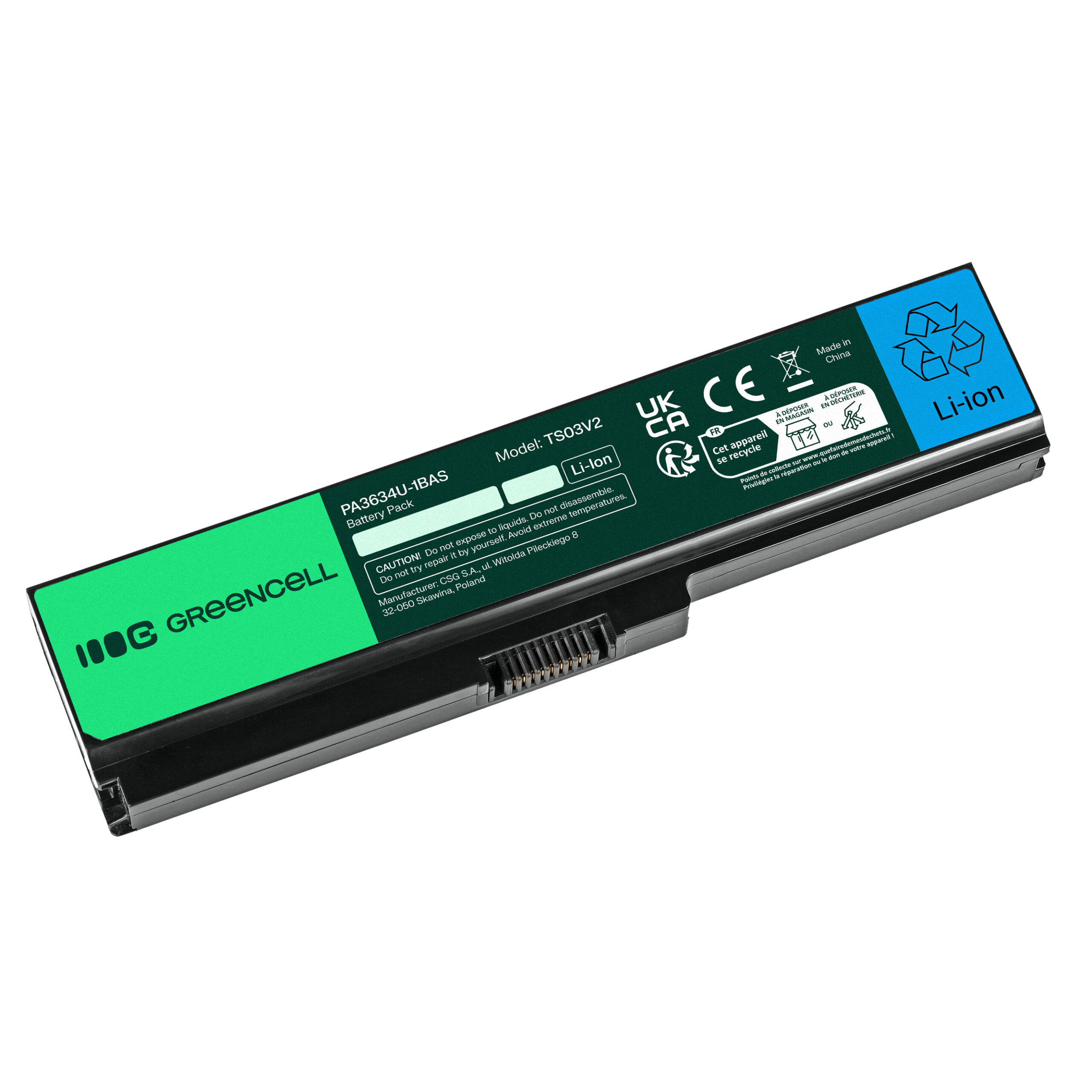 Warranty: 12 months; Cells manufacturer: Greencell; Voltage: 10.8V (11.1V); Number of cells: 6; Cells technology: Li-Ion; Colour: Black; Overheat protection: Yes; Overdischarge protection: Yes; Overcharge protection: Yes; Product code: TS03V2; Manufacturer: Greencell; Capacity: 4400 mAh;
