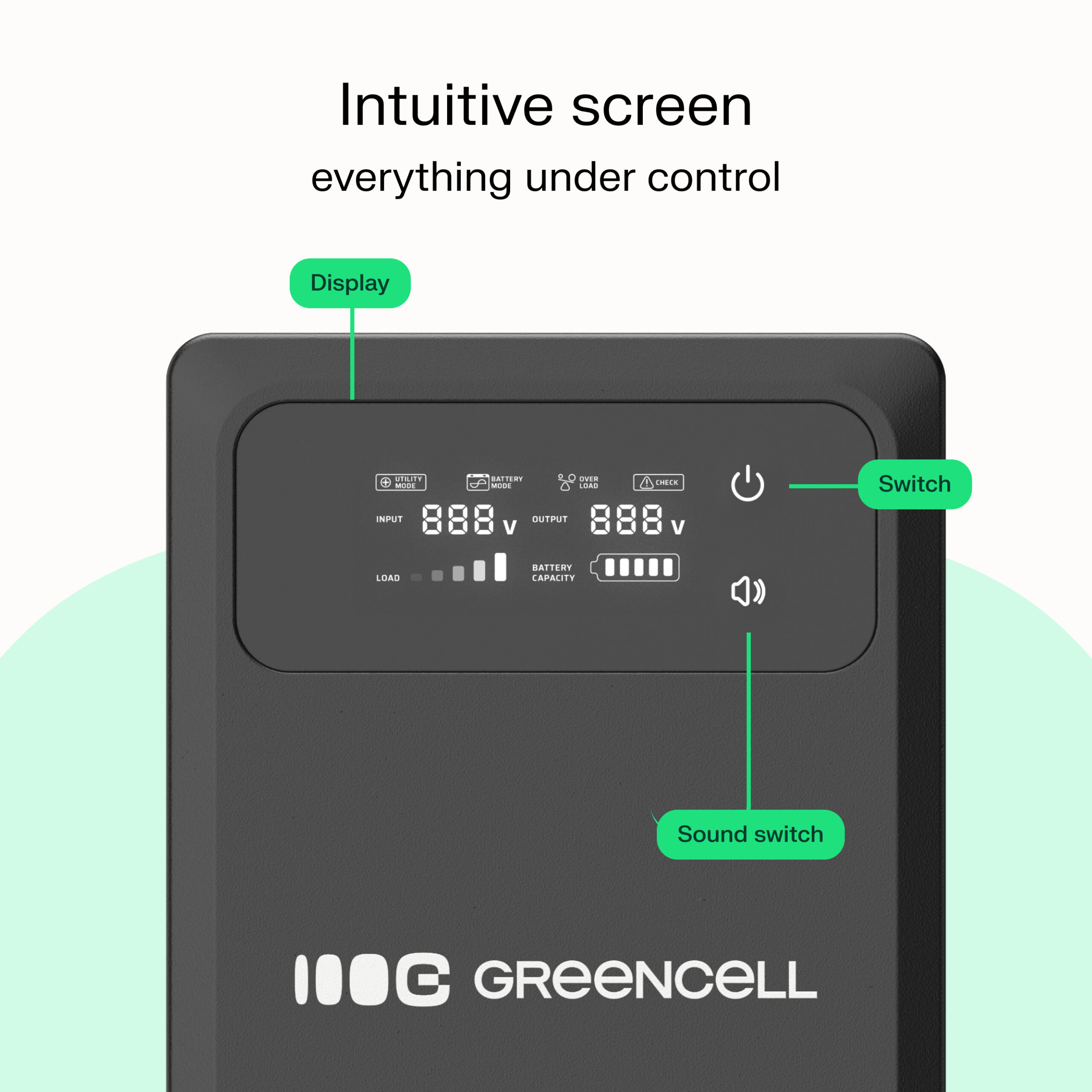Green Cell Uninterruptible Power Supply UPS 800VA 500W with LCD Display PowerCore 12 VDC